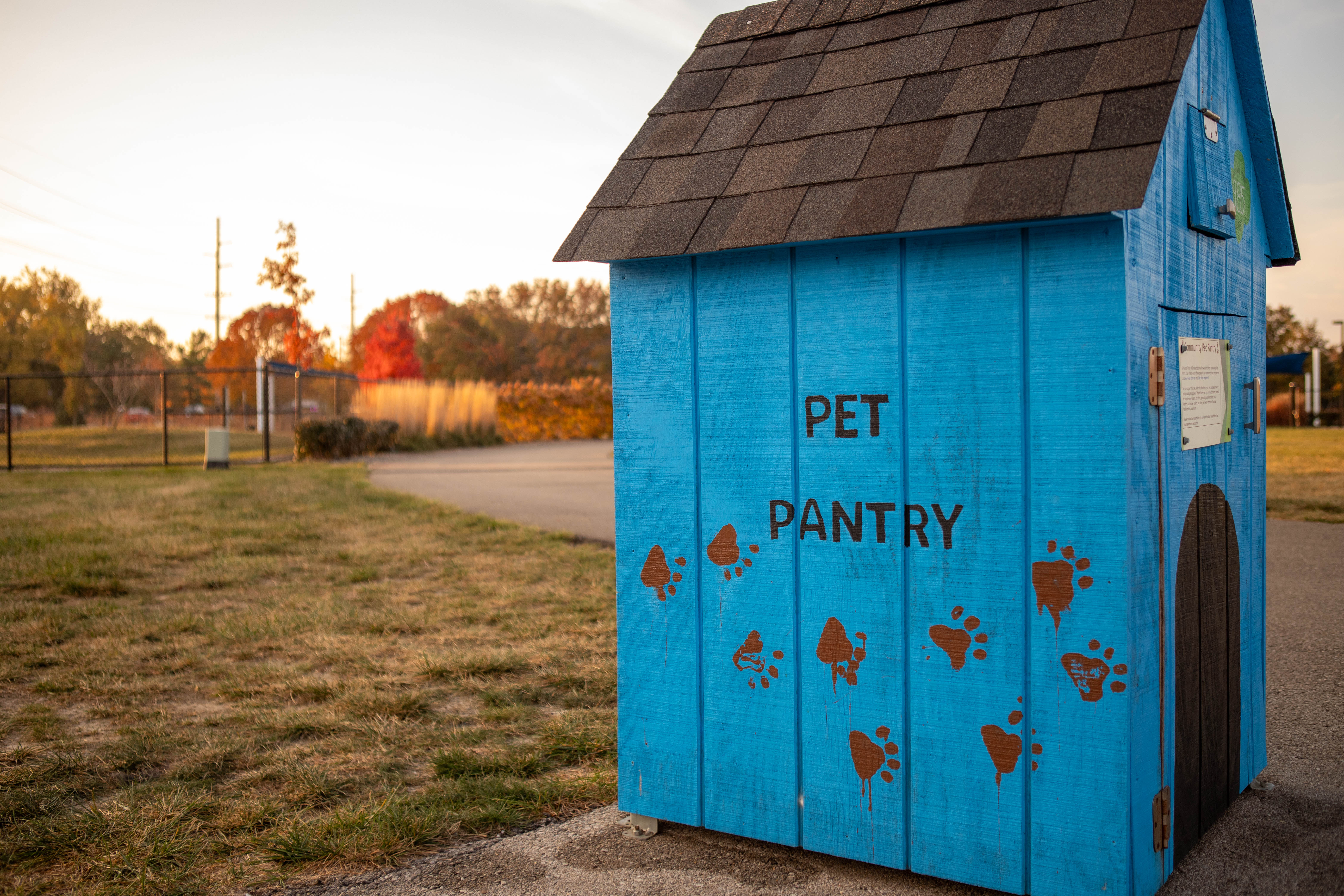 Brownsburg’s Cardinal Bark Park hosts a pet pantry initiated by Girl Scout Troop 985, providing pet food and supplies for community animals.